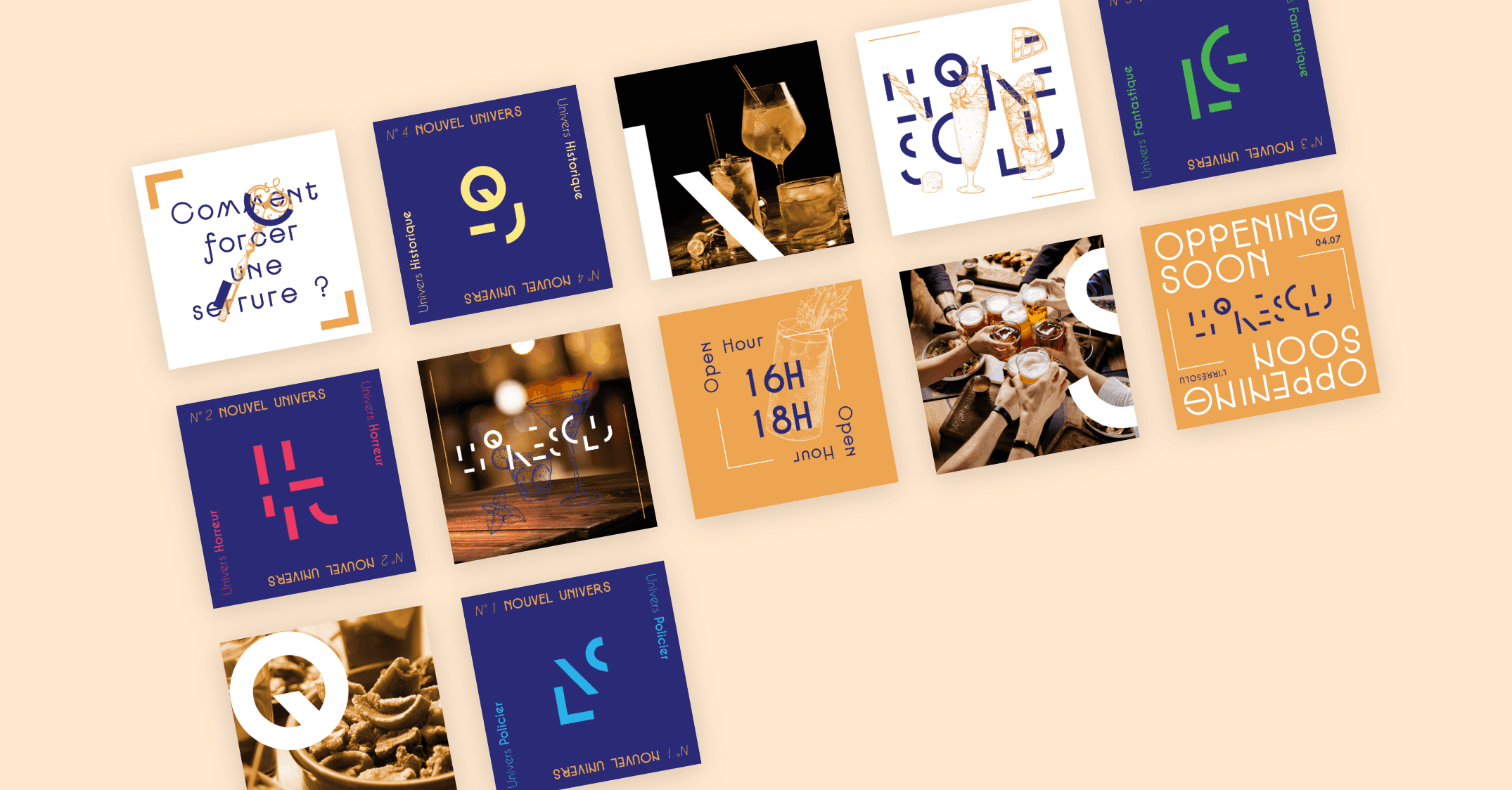 Pour ce projet, l’objectif était de concevoir un concept de bar à jeux original. J’ai donc imaginé un bar à énigmes immersif, inspiré du modèle des escape games. L’idée repose sur un lieu comprenant quatre salles, chacune décorée autour d’une thématique distincte : policier, épouvante, fantastique, et historique.