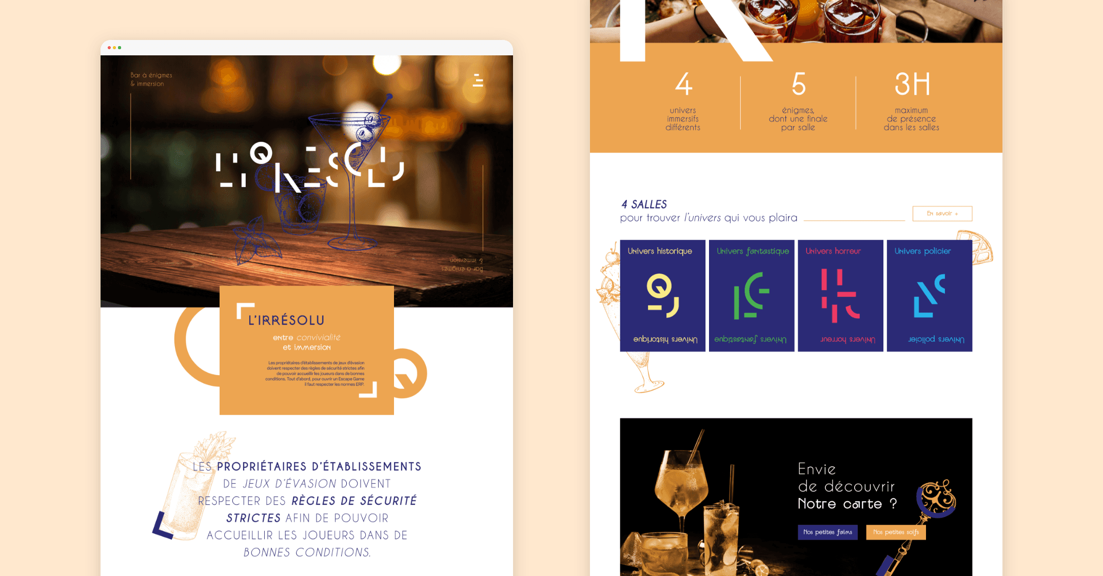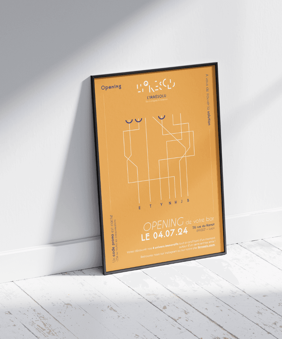 Le nom « L’Irrésolu » reflète cette idée de défier les clients avec des énigmes, à la manière d’un escape game, tout en offrant une expérience plus décontractée, sans contrainte de temps ou de performance.